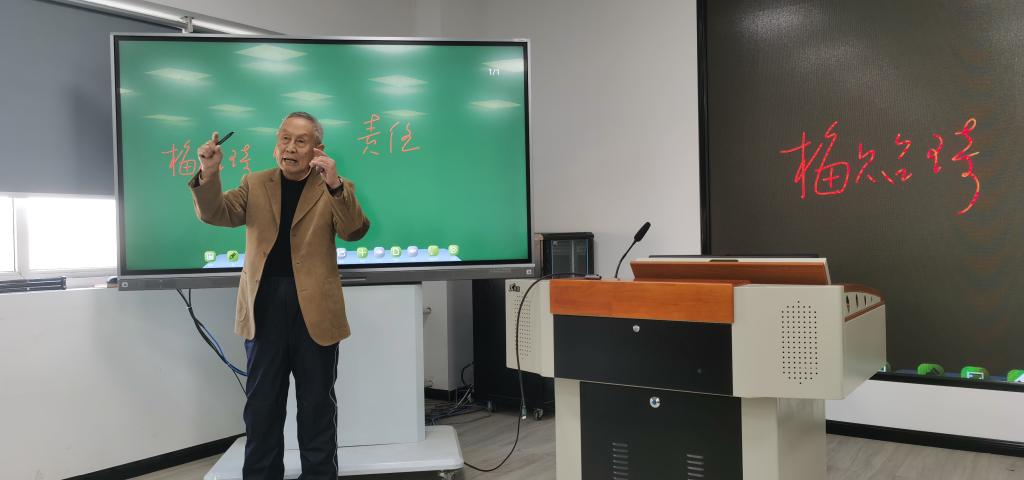 汉泽西教授利用传统的板书,指出教师的责任就是培养合格的社会主义接班人,在教育员工时要传道授业解惑,并且做到四个回归:回归常识、回归本分、回归初心、回归梦想,把人才培养的质量和效果作为检验一切工作的根本标准。他引用梅贻琦“所谓大学者,非谓有大楼之谓也,有大师之谓也”指出,一个大学之所以成为大学,并不在于它有多少幢大楼,而在于它有多少名大师,教师承担着最庄严、最神圣的使命。汉教授结合几十载丰富的人生经历指出,我们要教会老员工学会三件事:懂政治、会学习、爱生活,这样才能很好的完成员工到社会人的转换。他说,培养科技创新人才要有好的导师,师生之间要有面对面共同研讨的过程,这种过程是网络不能取代的。最后,汉教授送给在场的老师们一句话:生活不是舞蹈,不能走退步,希望老师们能够做“明师”。