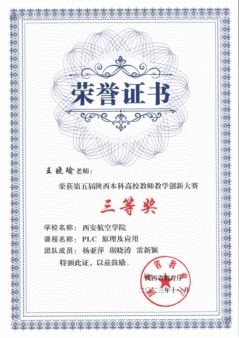 第五届陕西省本科高校教师教学创新大赛三等奖