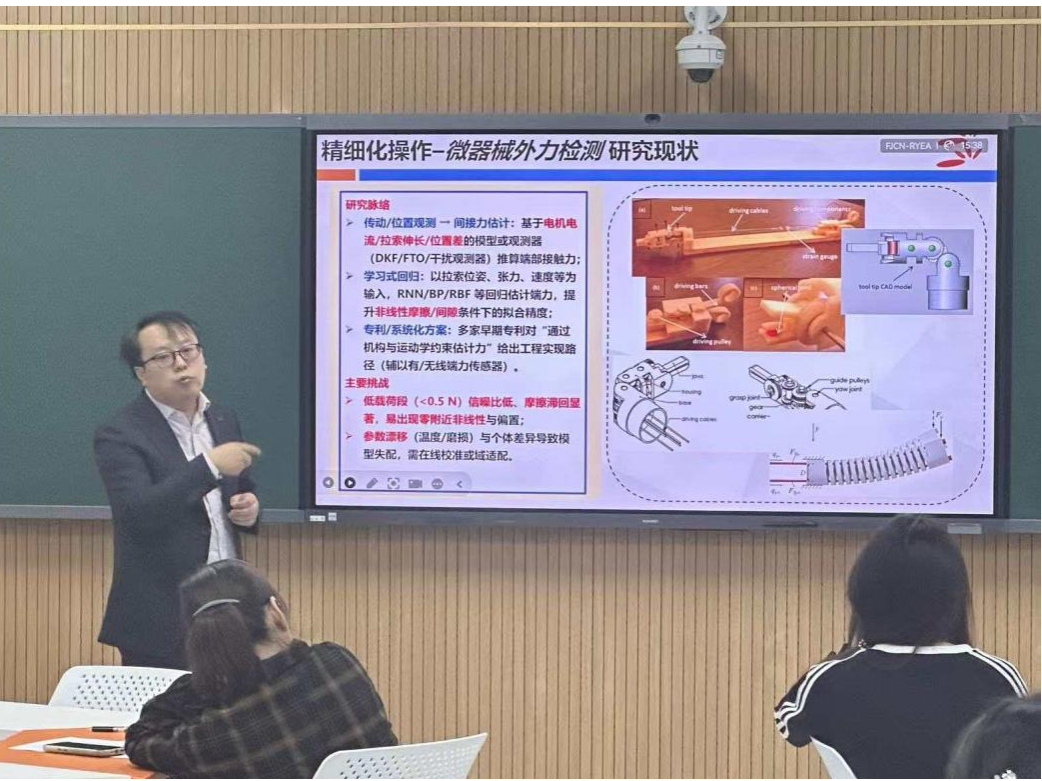 论坛伊始,马天力副教授以《逆变器开路故障诊断技术研究》为题,围绕逆变器故障诊断这一工业领域关键问题展开分享,他的研究为无人系统电力驱动模块的可靠性提升提供了技术支撑。随后,王文杰副教授带来《腹腔手术机器人精细化与自主化操作》的精彩报告。报告中,他深入解析了腹腔手术机器人在精细化操作与自主化控制方面的技术突破,为无人系统在医疗领域的创新应用打开了思路。最后,公司宋科高级工程师聚焦《自动化及机器人应用项目实践及探讨》,从工程应用角度阐述了自动化及机器人技术在实际项目中的落地路径。他的分享将理论与实践深度融合,为公司产学研一体化发展及服务国家战略新兴产业需求提供了有益参考。