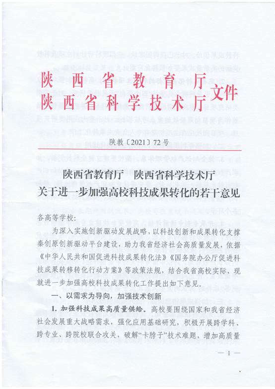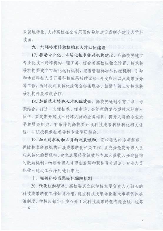 关于进一步加强高校科技成果转化的若干意见