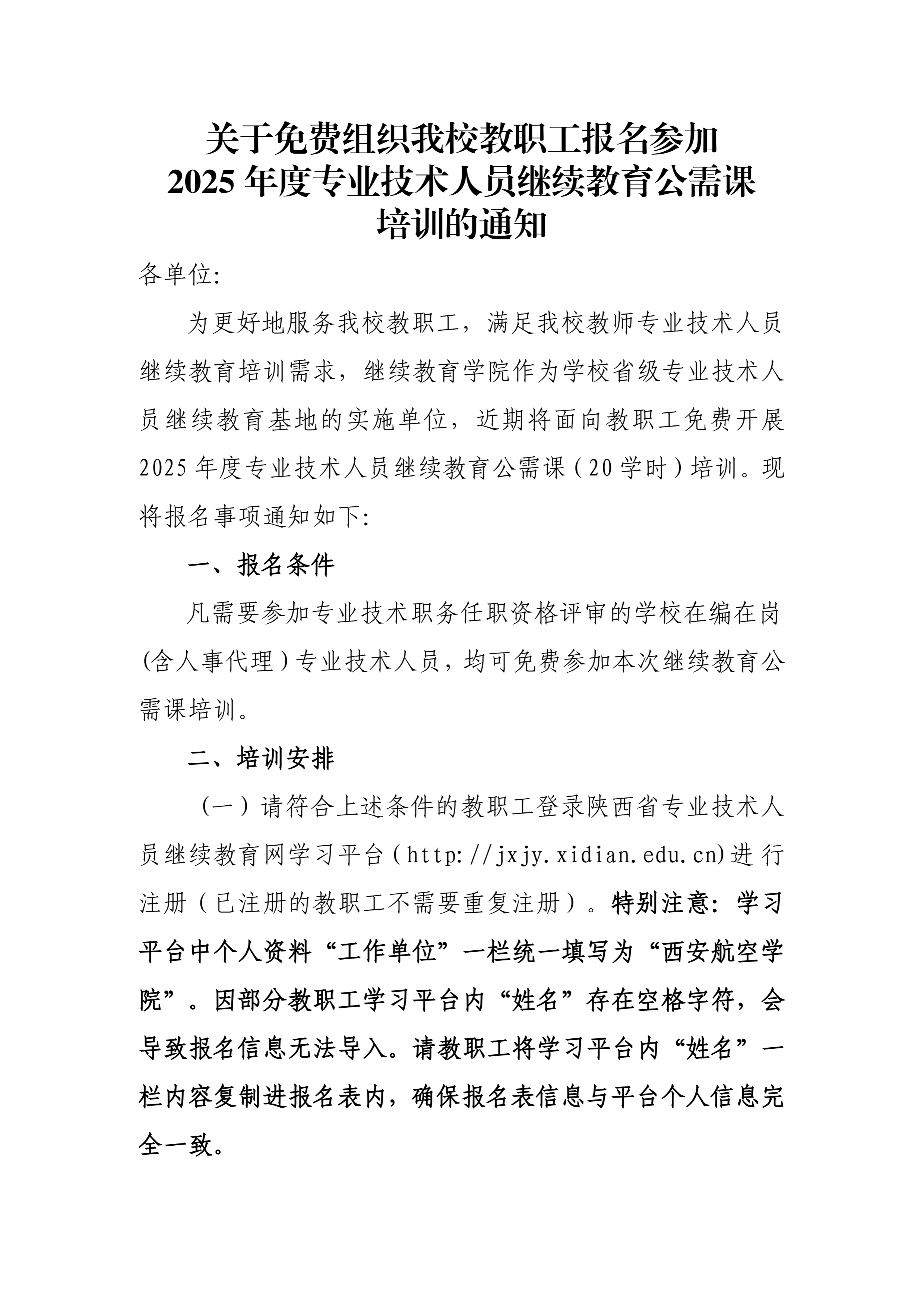 关于免费组织公司教职工报名参加2025年度专业技术人员继续教育公需课培训的通知